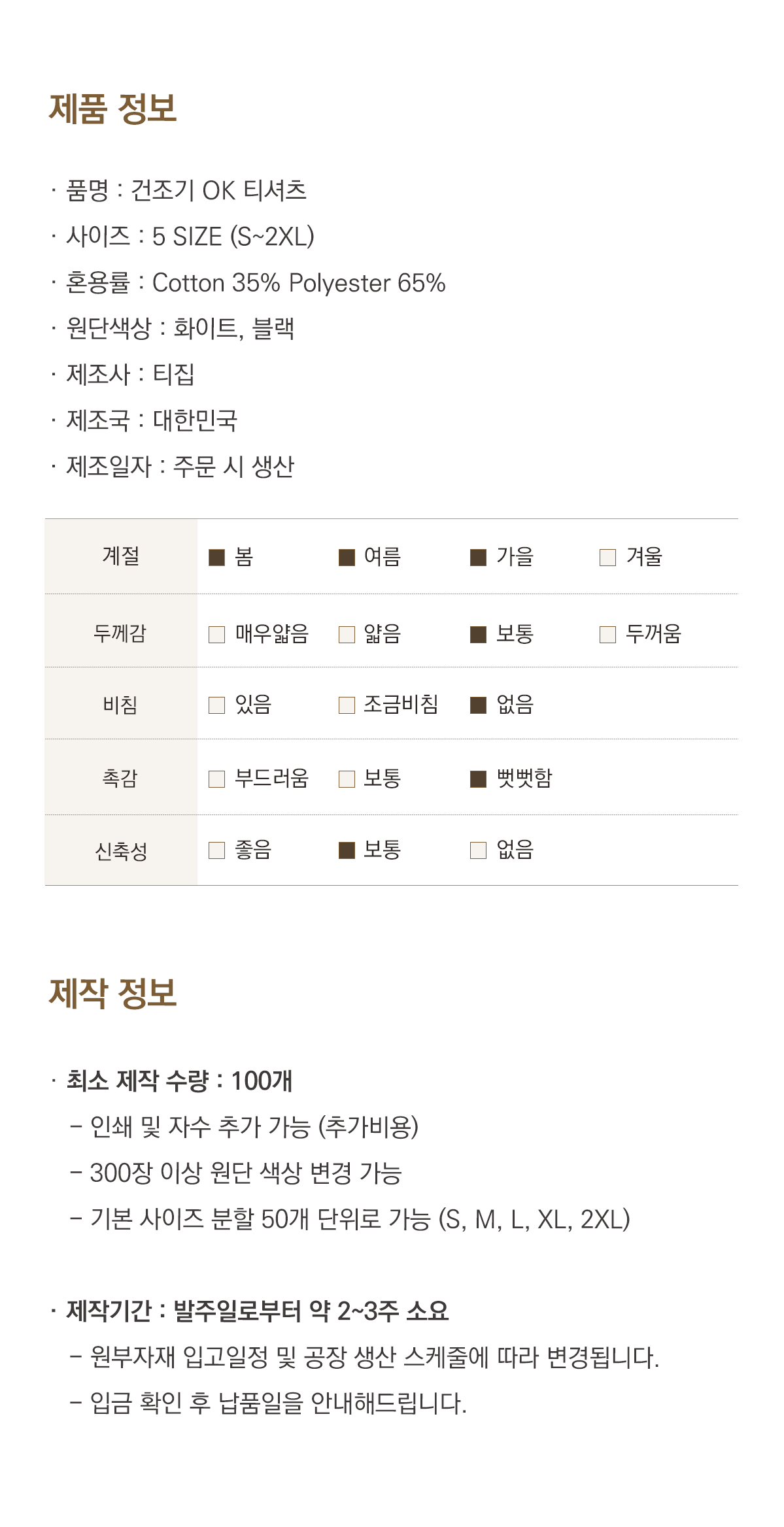 · 자주 세탁해도 큰 변형 없는 튼튼한 티셔츠 (15수)