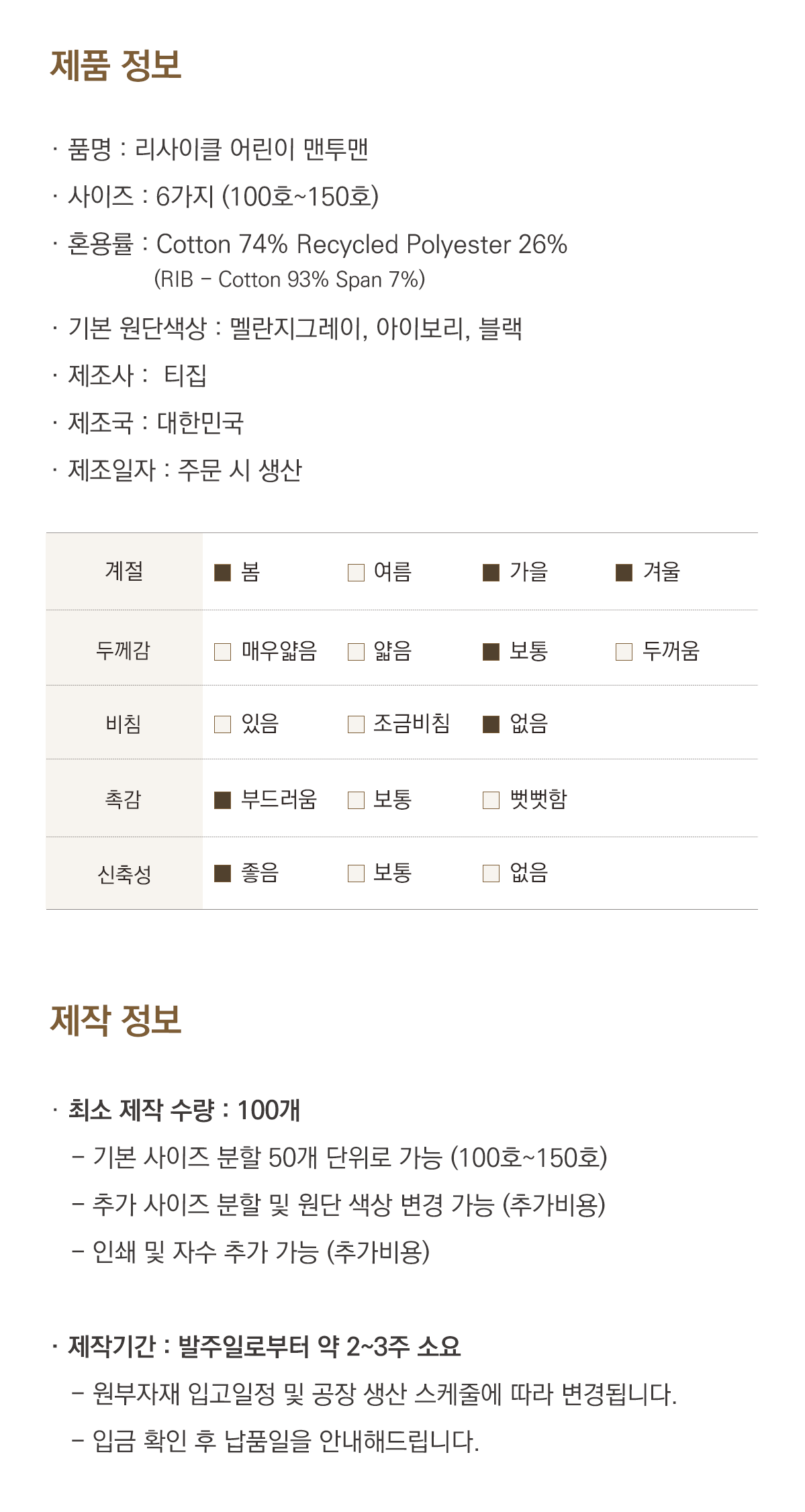 * 티집 친환경 어린이 티셔츠는 KC 인증을 취득한 제품입니다.